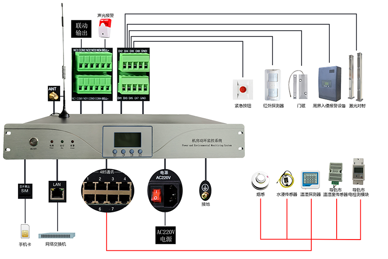 動(dòng)環(huán)主機(jī)是一款集動(dòng)力環(huán)境監(jiān)控功能及入侵防盜報(bào)警于一體的設(shè)備,可實(shí)時(shí)監(jiān)測(cè)機(jī)房、基站等場(chǎng)所的動(dòng)力設(shè)備運(yùn)行狀態(tài)、環(huán)境參數(shù)、入侵報(bào)警,如市電、UPS、蓄電池、溫濕度、煙霧、漏水、門(mén)禁