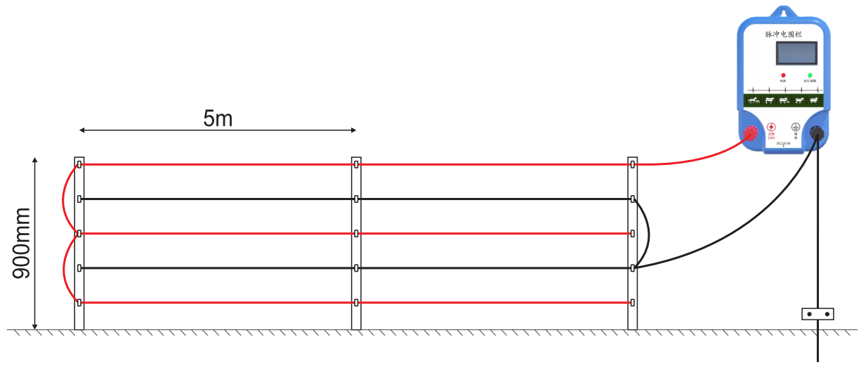 然后接上畜牧電子圍欄主機并給主機通上電即可,使用非常簡單不需要復雜的技術(shù)含量。接線方式如下圖:
